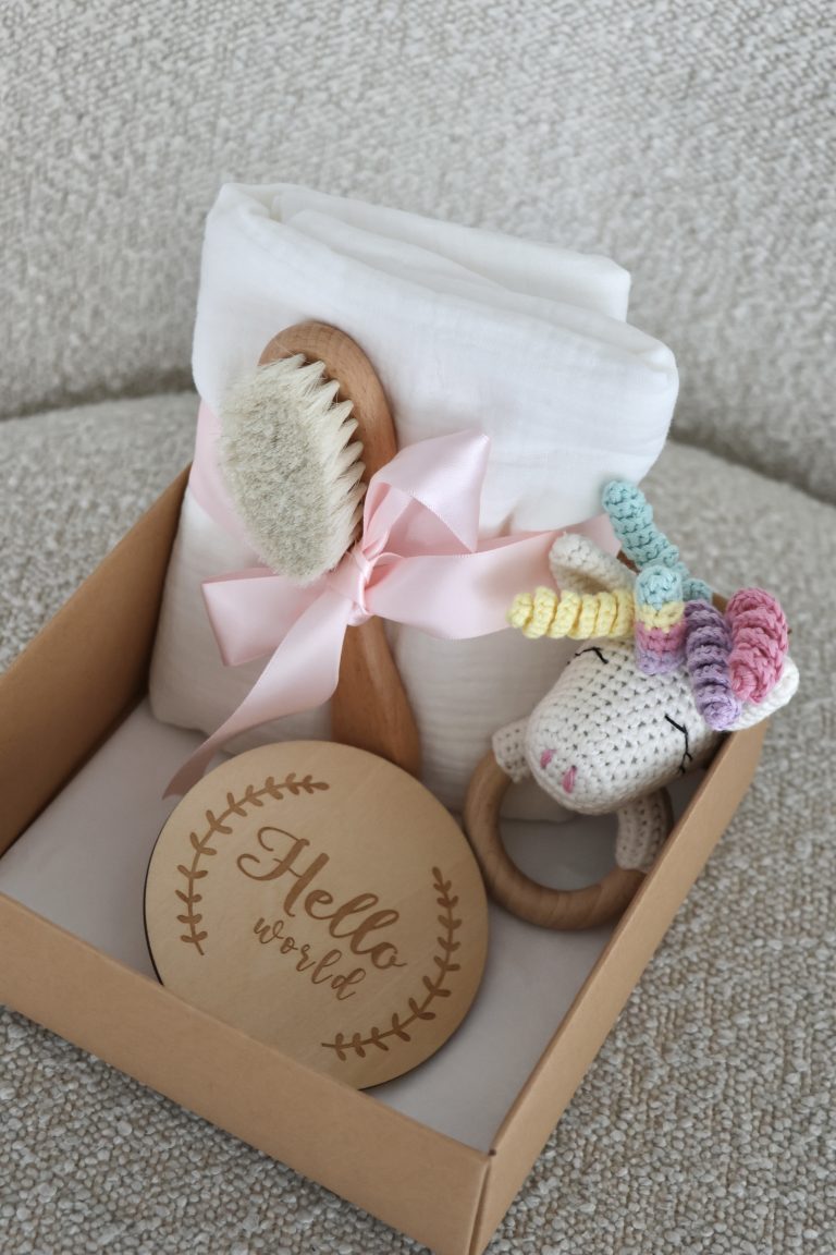 Unsere Baby-Geschenkbox wurde mit viel Liebe und Sorgfalt zusammengestellt. Es ist nicht nur eine Sammlung von Gegenständen, sondern auch ein sehr nützliches Set für die frischgebackenen Eltern. Ob für eine Babyparty oder die Geburt eines Neugeborenen, diese Geschenkbox wird mit Sicherheit von allen, die sie erhalten, geschätzt.