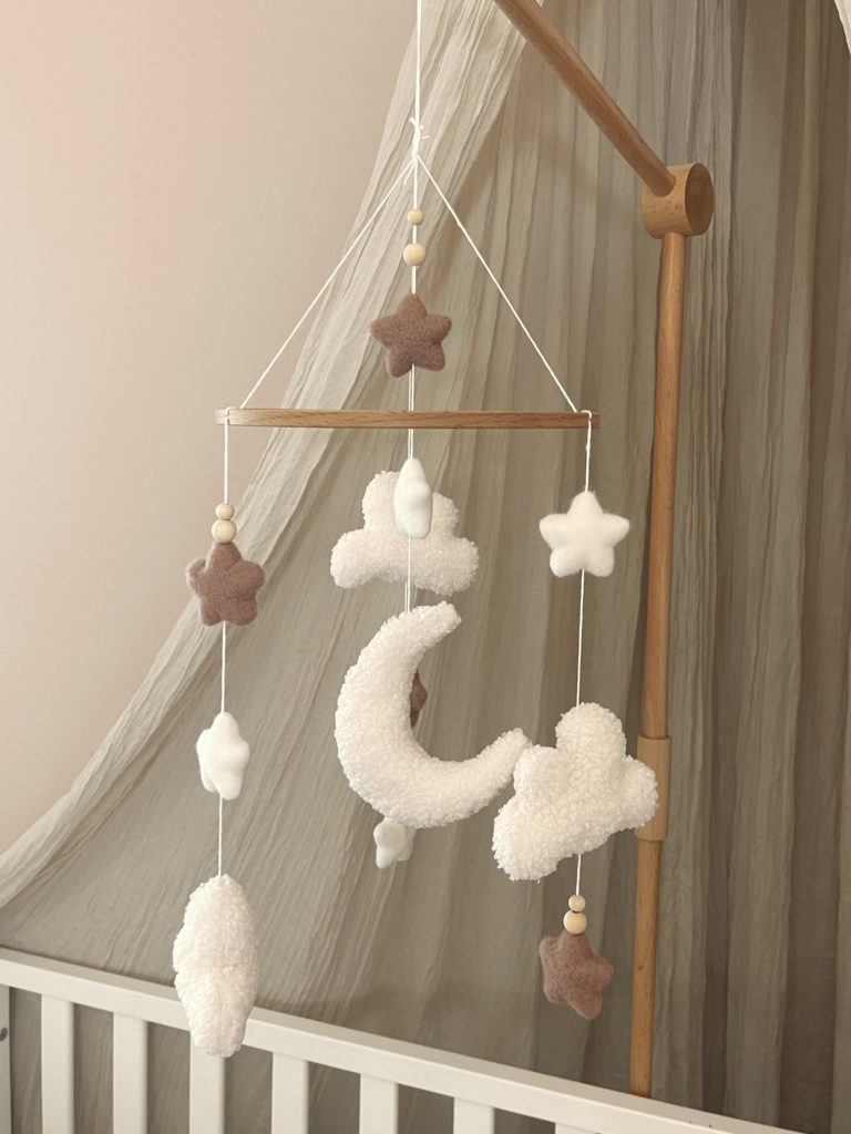 Elke muziekmobiel is met zorg ontworpen met oog voor detail, om naadloos te integreren in de babykamer. We bieden diverse ontwerpen en kleurenopties aan, zodat je de muziekmobiel kunt kiezen die past bij de stijl van de kamer en de persoonlijkheid van je kleintje.