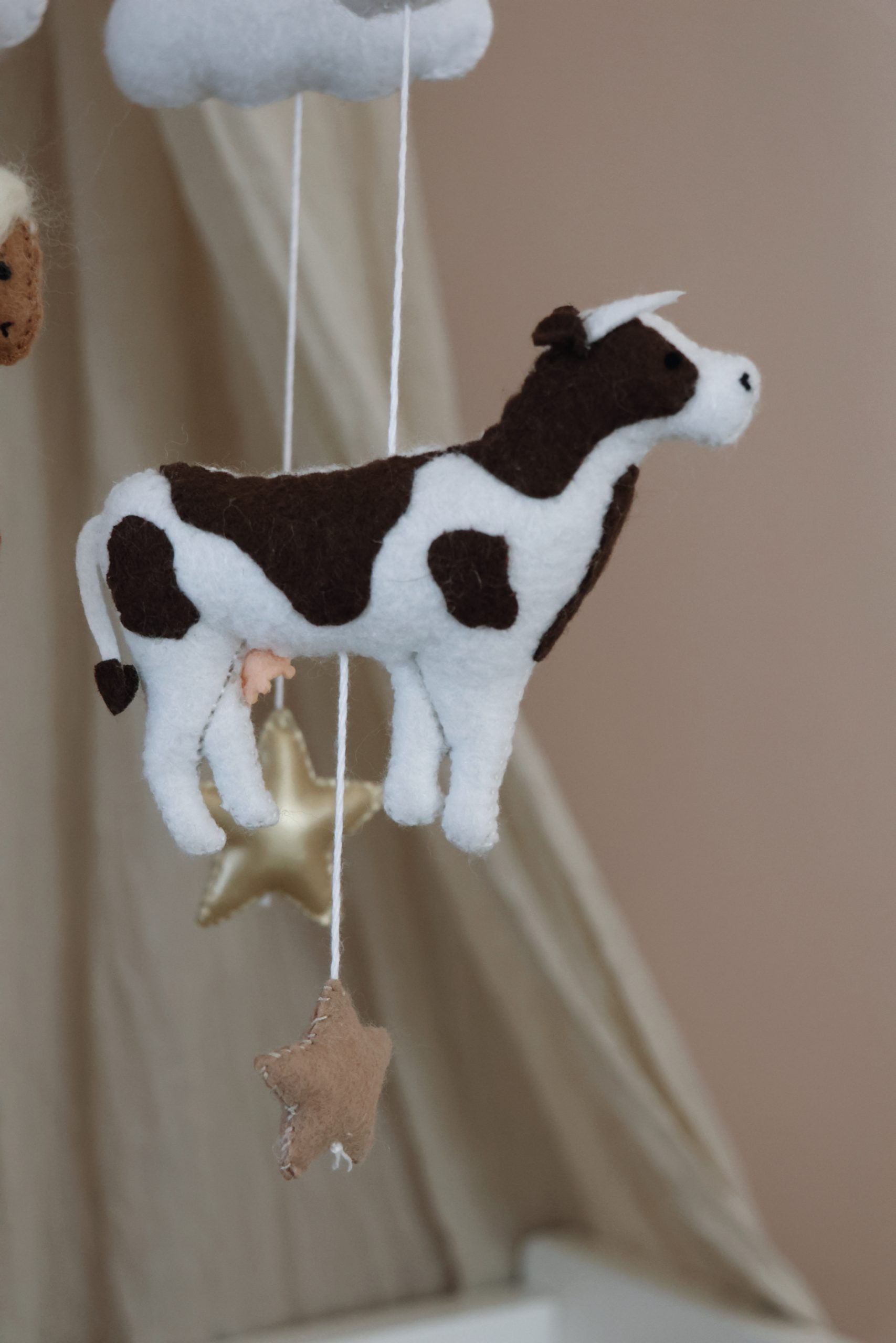 When the cattle mobile is hung above your child’s bed, this mobile isn’t just a decoration. The mobile adds a touch of playful calmness and style to their room. Additionally, when paired with our music box, it will make bedtime easier than ever.