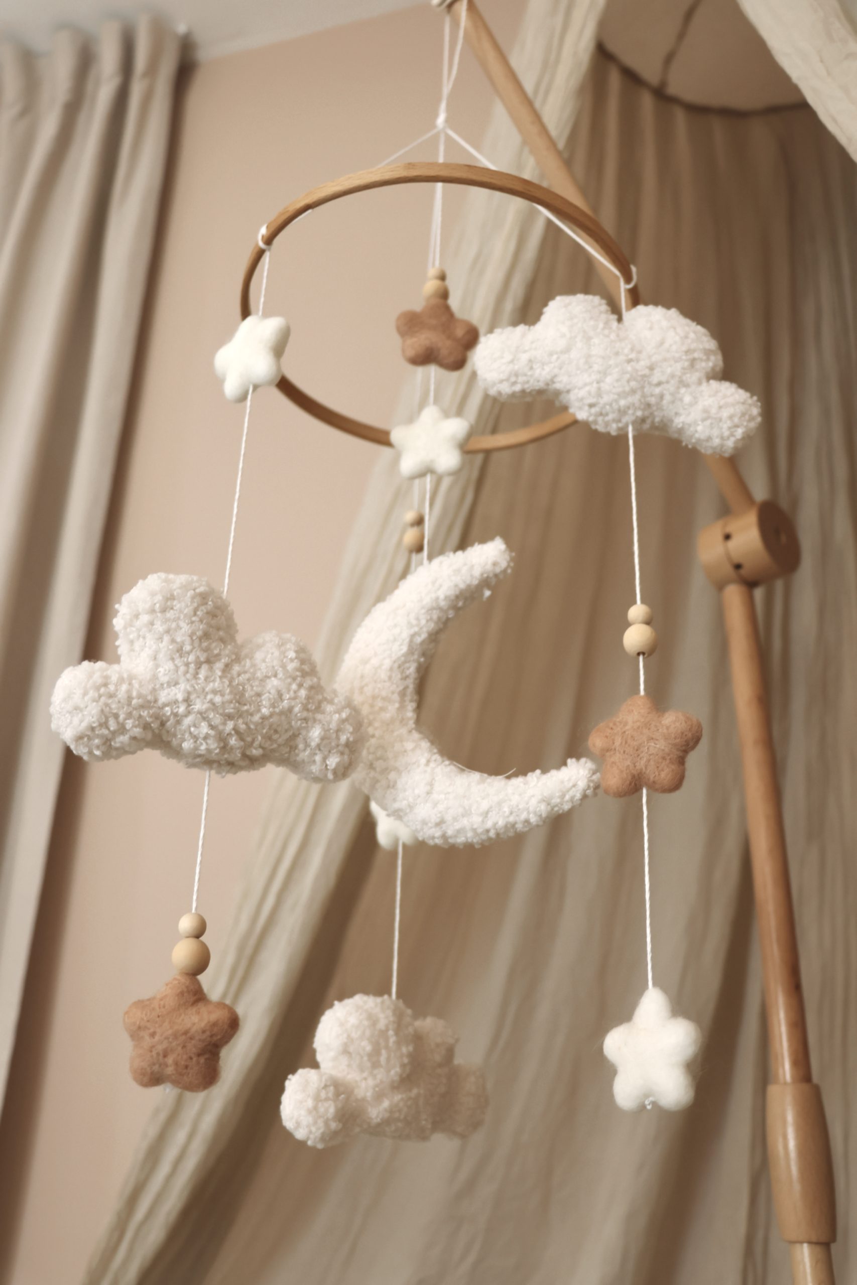Our mobiles are unique and eco-friendly. This is due to the fact that they are carefully handmade. Elevate your baby’s nursery with the charm of our mobiles and enjoy the added benefit of free delivery for orders over €100. We deliver straight to your doorstep! Give your child’s space a special musical touch today!