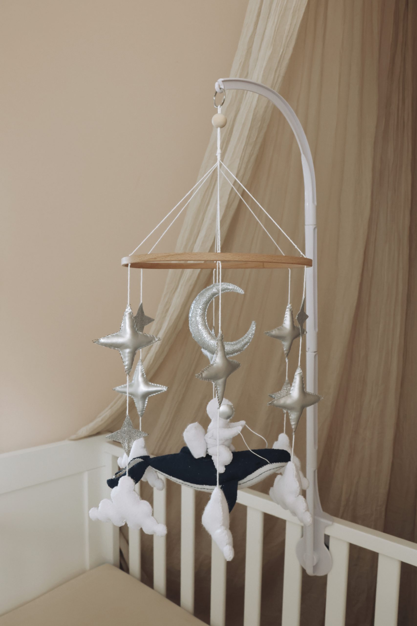 - Safe and Secure: Engineered with your baby’s safety in mind, our plastic arm undergoes rigorous testing to ensure stability and strength. You can have peace of mind knowing that your baby’s mobile is securely suspended above the crib, minimizing the risk of accidents. The plastic arm is perfect to hang your babymobile on without our music box . The total weight of the babymobile and music box together is too heavy .