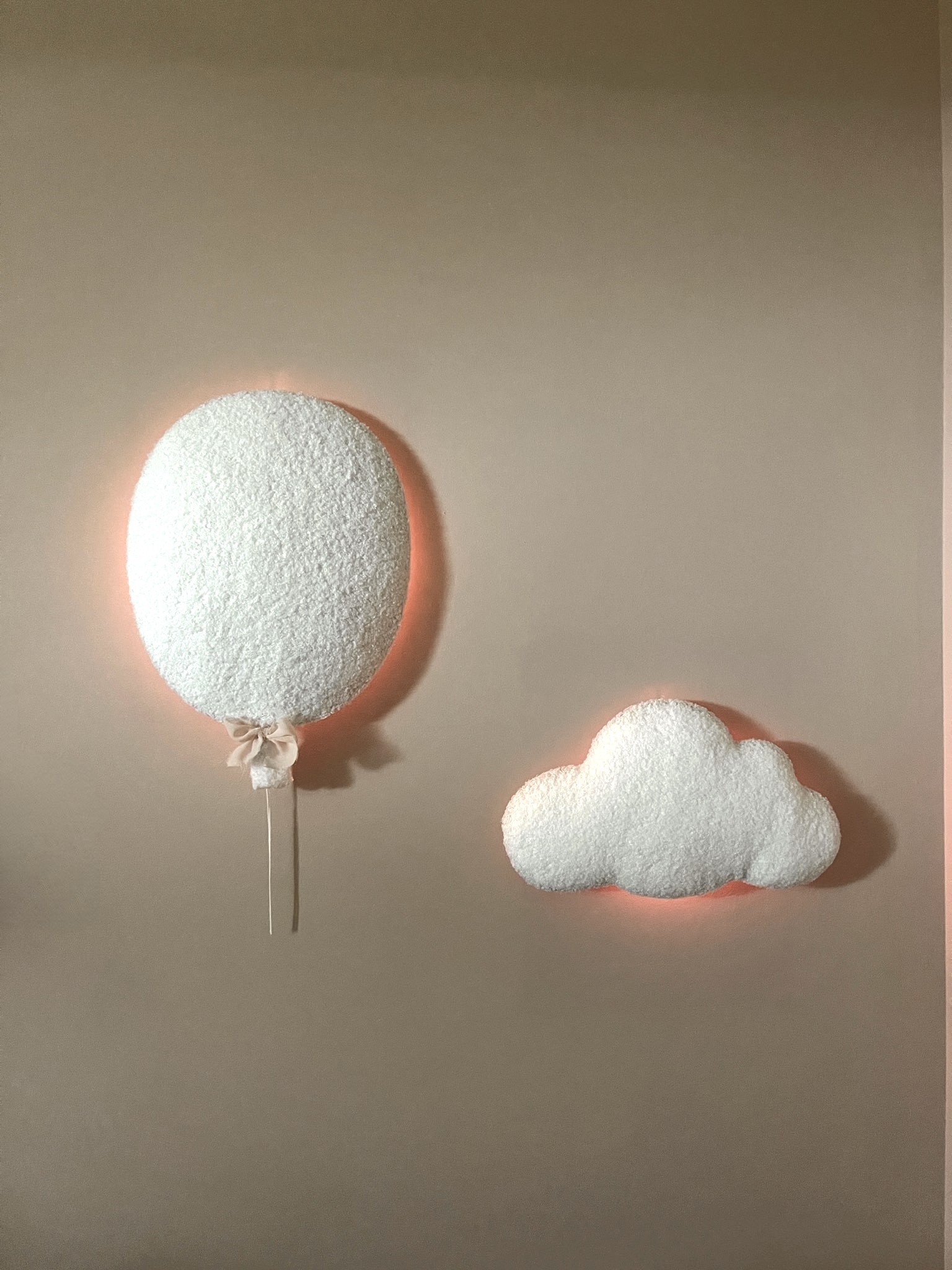 Our bouclé wall lamps – available in the shape of a balloon and a small cloud – bring not only a soft, soothing glow but also a touch of magic to any nursery or playroom.